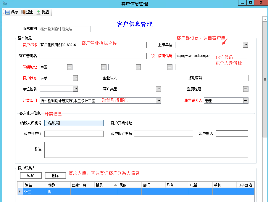 添加客户信息,建立客户数据库,不能重复添加相同的客户名称、社会信用代码。