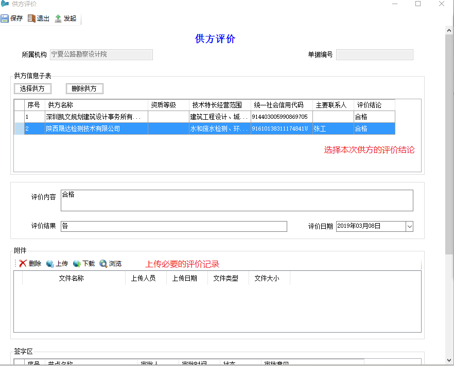 添加多个供方进行集中评价,流程完成后会更新供方库供方的合格状态