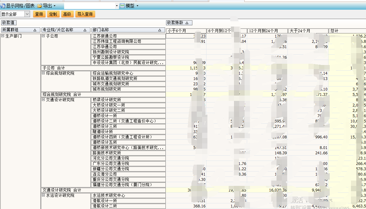 统计经营责任主体、生产责任合同应收款账龄对应的应收款数据